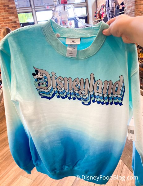 As always, we had a successful visit to World of Disney, where we spotted several new merchandise items! First up is this pretty blue gradient Disneyland sweatshirt for $44.99.
