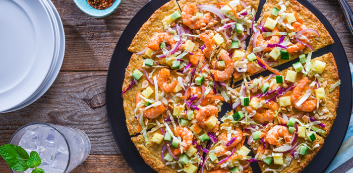 Thai Spicy Shrimp Pizza with Cauliflower Crust