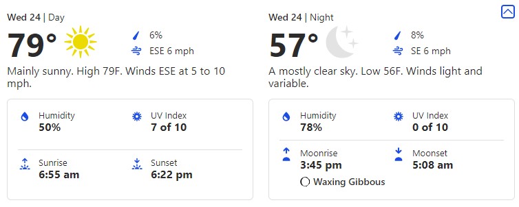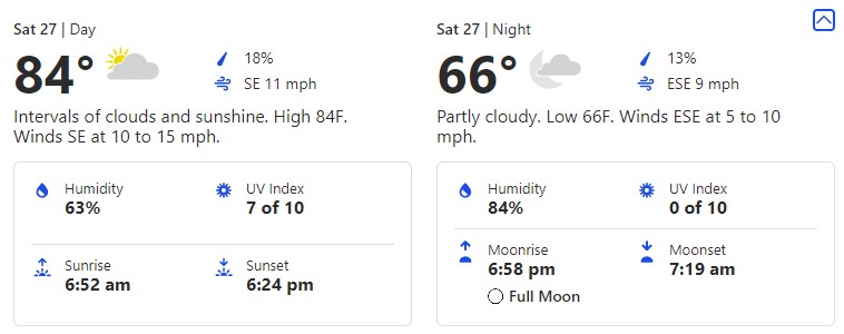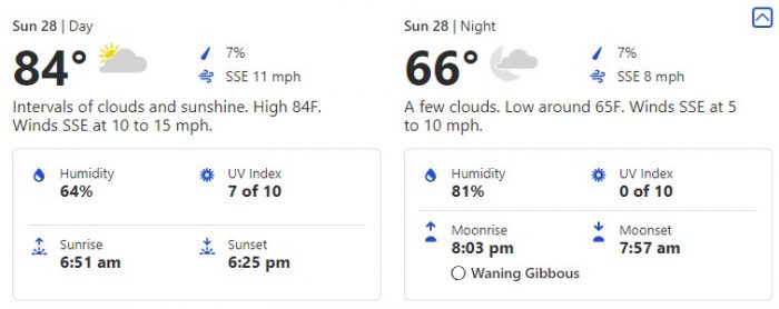 Here, we’re looking at an 84-degree high and a 66-degree low.