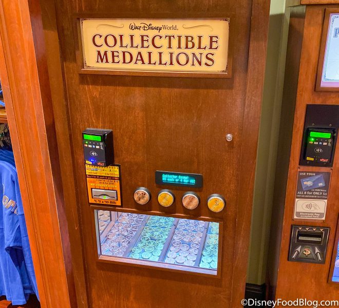 So, you’ve seen the pennies, but have you ever seen Disney’s Collectible Medallions? We bet you’ve walked past one of these machines as you were running to your next reservation or ride and never even noticed them. They’re not new (well, they might have updated designs, but the fact that Disney sells collectible medallions is not new). In fact, they’ve been around for several years, but they’re often overlooked. We spotted one of these Collectible Medallion machines in the Emporium in Magic Kingdom.