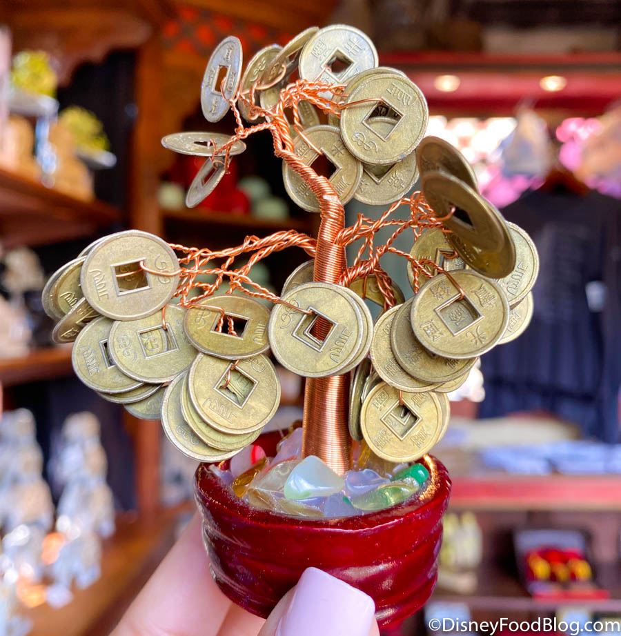 We were just wandering through the Asia Market and noticed that there are money trees in Animal Kingdom! We guess mom and dad were wrong about that, right? These are little trees made with chinese coin “leaves” knotted onto wire that represents branches.