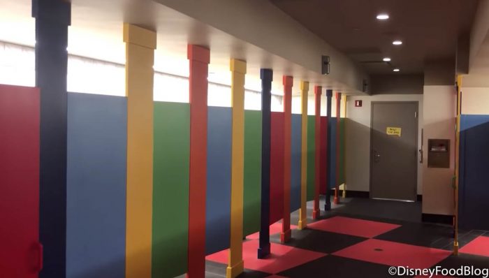 Okay, we could include SO many unique details in Disney’s bathrooms (we even have a list of all the BEST bathrooms in Disney World), but for this one we’ll focus on the restrooms in Toy Story Land in Disney’s Hollywood Studios. All of Toy Story Land is full of incredible details, and the bathrooms are no exception. Notice what the restroom sign is made of? Scrabble pieces! And the “girls” sign — that’s made of kids’ blocks! You’ll also notice the outside walls of the bathrooms are made up of a bunch of building blocks of different shapes and sizes, and more.