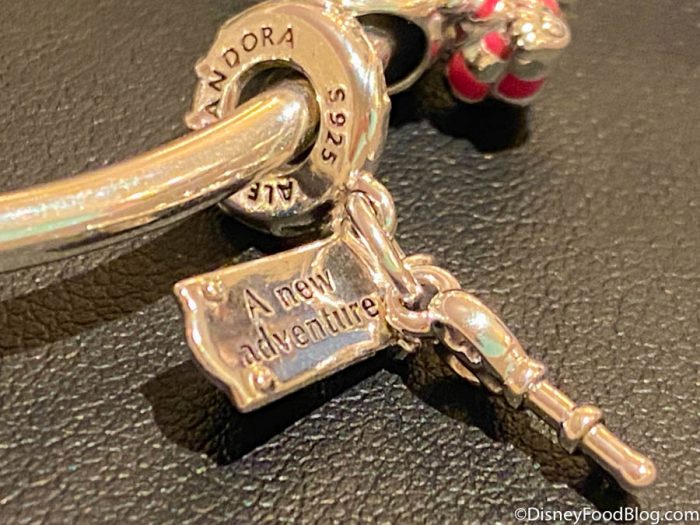 The last charm in the collection is a Cheshire Cat and Absolem Caterpillar charm. It’s definitely a more subtle accessory — you’ve gotta squint to make out the characters inside the charm! This one’s $45.
