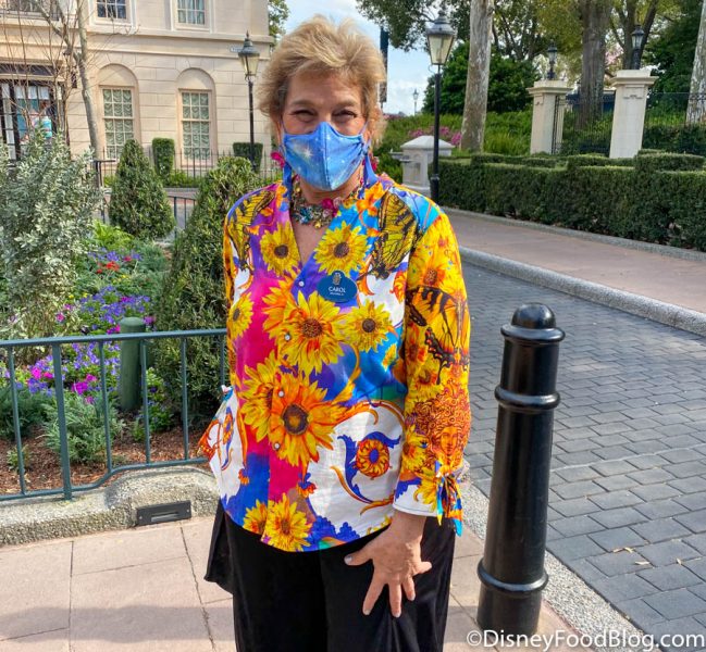 Carol Stein is a singer and pianist that usually sets up shop in the UK pavilion’s Rose and Crown Pub. When Disney World reopened, Carol returned to play at the UK pavilion gazebo instead and we spotted her playing as we wandered through!