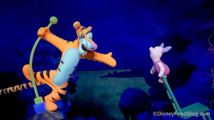 The storyline and characters within the attraction underwent a complete overhaul when Mr. Toad was swapped out for Winnie the Pooh. The most noticeable change? Mr. Toad was a two-track ride, offering guests the option to experience two slightly different tracks. Pook has only one track. The space the second track occupied…turned mostly into the Pook-themed gift shop at the end of the ride. 😳 But, there are still several nods to Mr. Toad in Magic Kingdom, including one in the attraction itself.