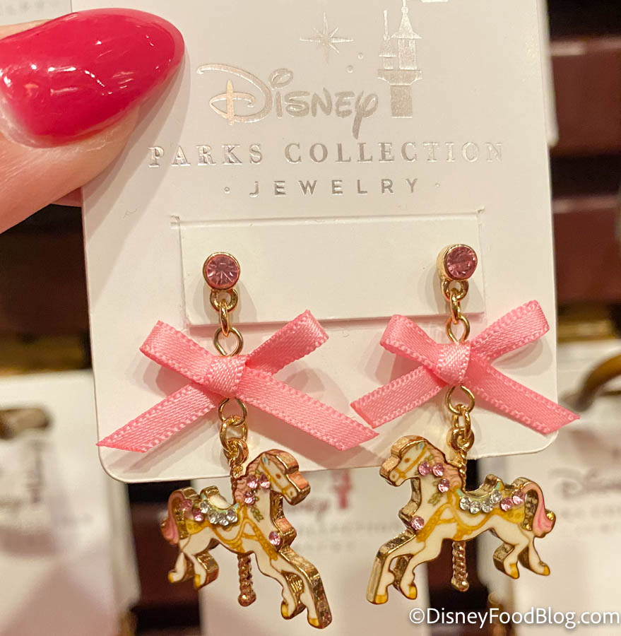 …and TWO sets of earrings! One pair of earrings has carousel horses with pink bows and gems…