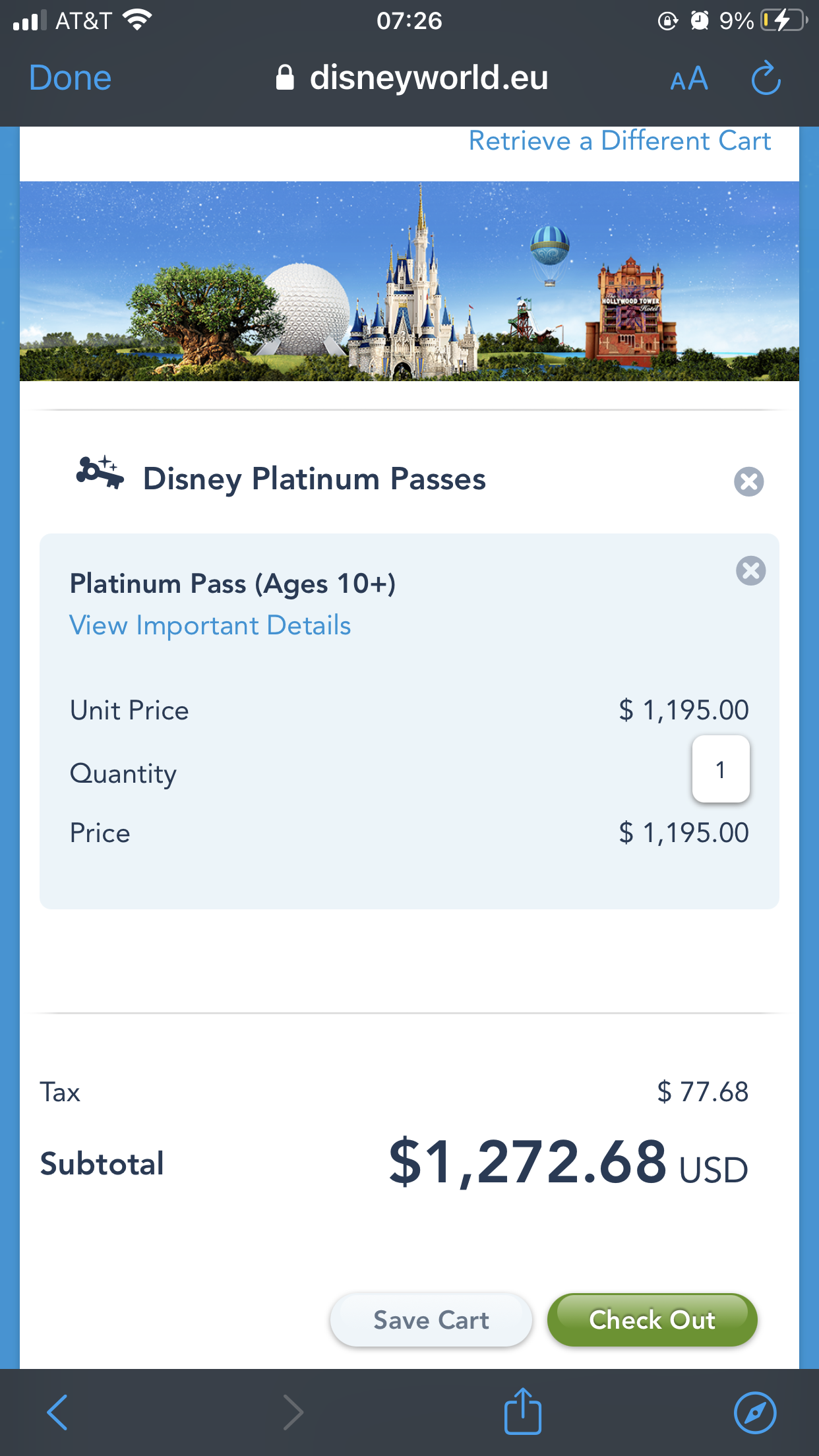 When we visited the U.K. Disney site, we noticed an option to add the Platinum Annual Pass to our cart. Previously, this page wouldn’t load at all — visitors to the site couldn’t see pass options or prices. What could be goin’ on?