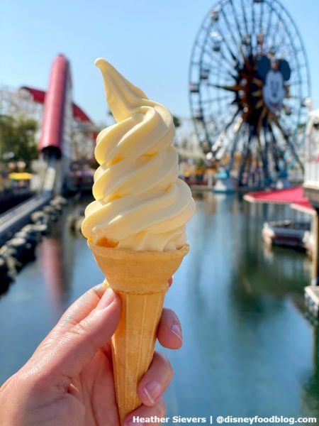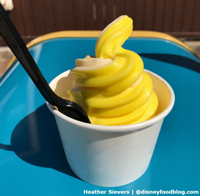 You can find the original Dole Whip on the menu with its swirled pineapple goodness. You can either get it in a cup or a cone!