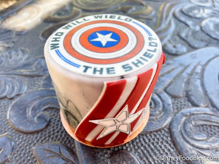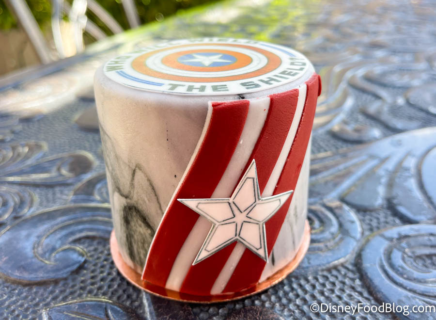 No, we’re not talking about spoilers…we’re talking about CAKE! If you enjoyed eating the weekly themed WandaVision petit cakes, then you’re in for a treat (literally!). Today, a new tiny cake debuted in Disney World in honor of the release of The Falcon and Winter Soldier on Disney+! So, we headed over to give it a try!