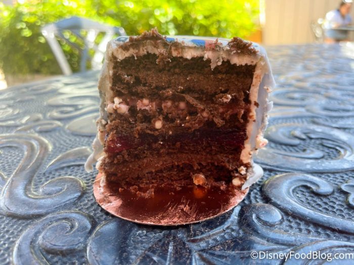 This little guy has A LOT going on. Between the fondant, jelly, mousse, and chocolate pearls we were having a blast eating through all the textures. The raspberry jelly was what caught us the most off-guard, but if you’re a fan of raspberries, we think you’ll like it. Overall, we still thought this chocolatey, fruity cake was delicious!