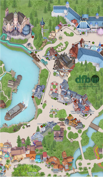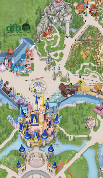 This map shows you a bit more of Fantasyland and the area near Be Our Guest Restaurant.