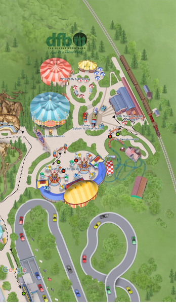 Here’s a look at the entrances and exits for rides within Storybook Circus.