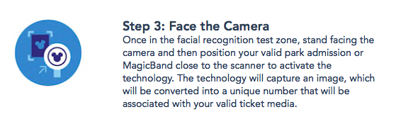 Then, face the camera and let the technology do its thing! You’ll have to tap your ticket or MagicBand to match your park admission to your face.