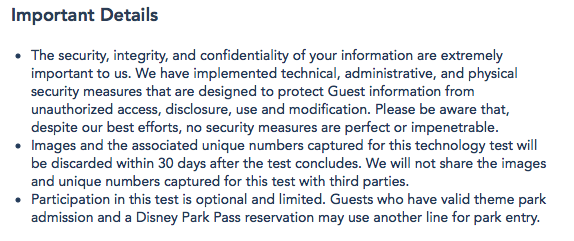 Next time you’re in Magic Kingdom, you can go back through that technology testing lane. If you’d rather opt out of testing altogether, you can go through any of the other lines and tap your park admission to the scanners as normal! And if your kiddos want to participate, they can do that — you’ll just need to be there with them if they’re under 18.