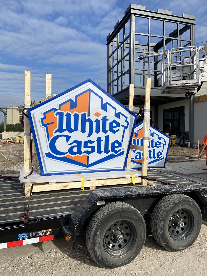We’ve been following the construction on this O-Town West White Castle for a few months now, and today, they hit a HUGE milestone: they raised the super colorful, super permanent sign!