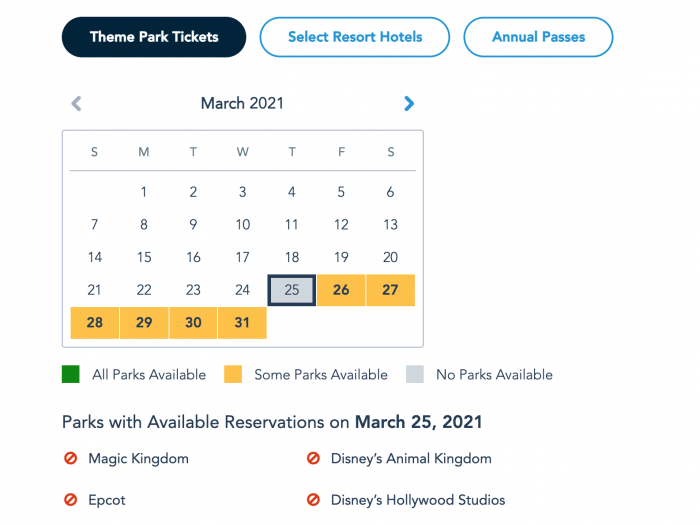 There’s a bit more availability for Annual Passholders, but it’s important to keep in mind that Gold and Silver level passholders will soon be blocked out for Spring Break.