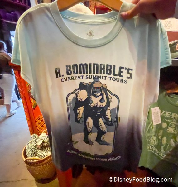 The Expedition Everest Gift Shop has LOADS of new shirts! This shirt reps the Yeti and tells the world you conquered Everest! And it’s available now for $24.99.