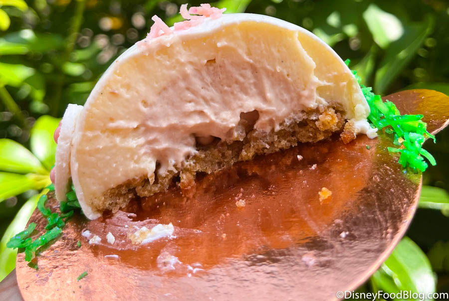 Okay, so this treat is pretty cute, right? But we’re here to EAT, people. When we dug in, we immediately noticed that the spicy carrot cake bottom complemented the sweet coconut. We enjoyed both flavors — especially because the coconut wasn’t too sugary.