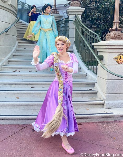 Back at the Main Street Train Station, we saw plenty of princesses, too, like Rapunzel…