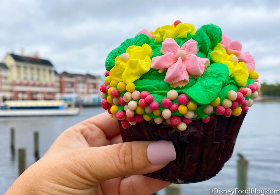 This cupcake was definitely festive and cute, but after you take your pictures for the ‘gram, but the flavors are a little on the bland side. The lemon filling was the MOST underwhelming part. It was more like a curd with a gelatin-like texture. It was also overwhelmingly T-A-R-T tart, tart, TART, and that tartness makes this a little less kid-friendly than other Disney World cupcakes.