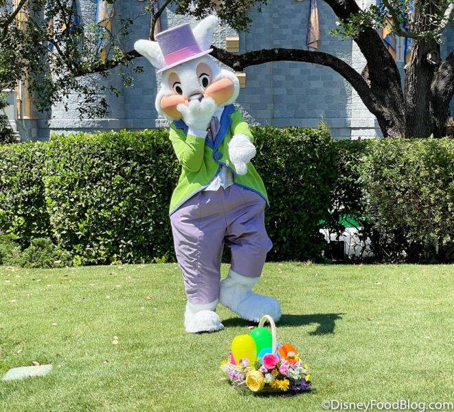 That’s right, we’re talking about the Easter Bunny! He’s officially made his way to Disney World to greet guests, and we spotted him at Magic Kingdom, spreading a little Easter spirit! You can find him hangin’ out right around Cinderella Castle.