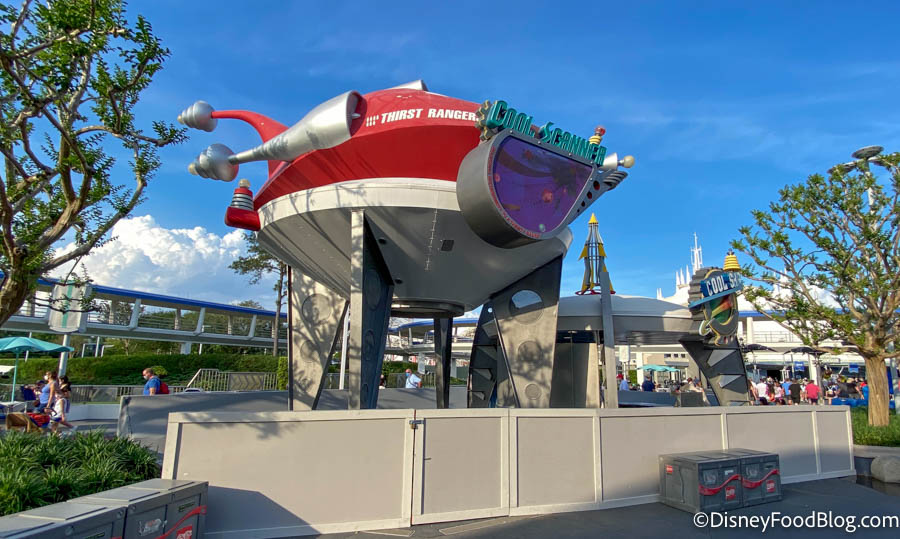 Over in Tomorrowland, we spotted construction walls up around the Cool Ship Snack Stand.