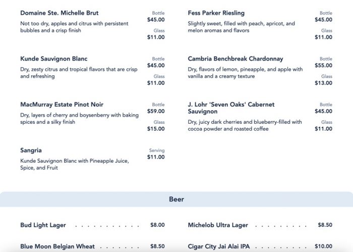 Also, aside from your standard non-alcoholic beverages, The Plaza serves beer and wine like all Magic Kingdom sit-down restaurants in recent years.