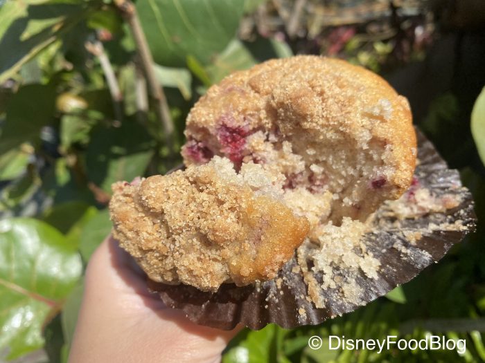 The Raspberry Streusel Muffin was SUPER moist, soft, and crumbly — a welcome change from some of the drier muffins we’ve had at Animal Kingdom in the past!