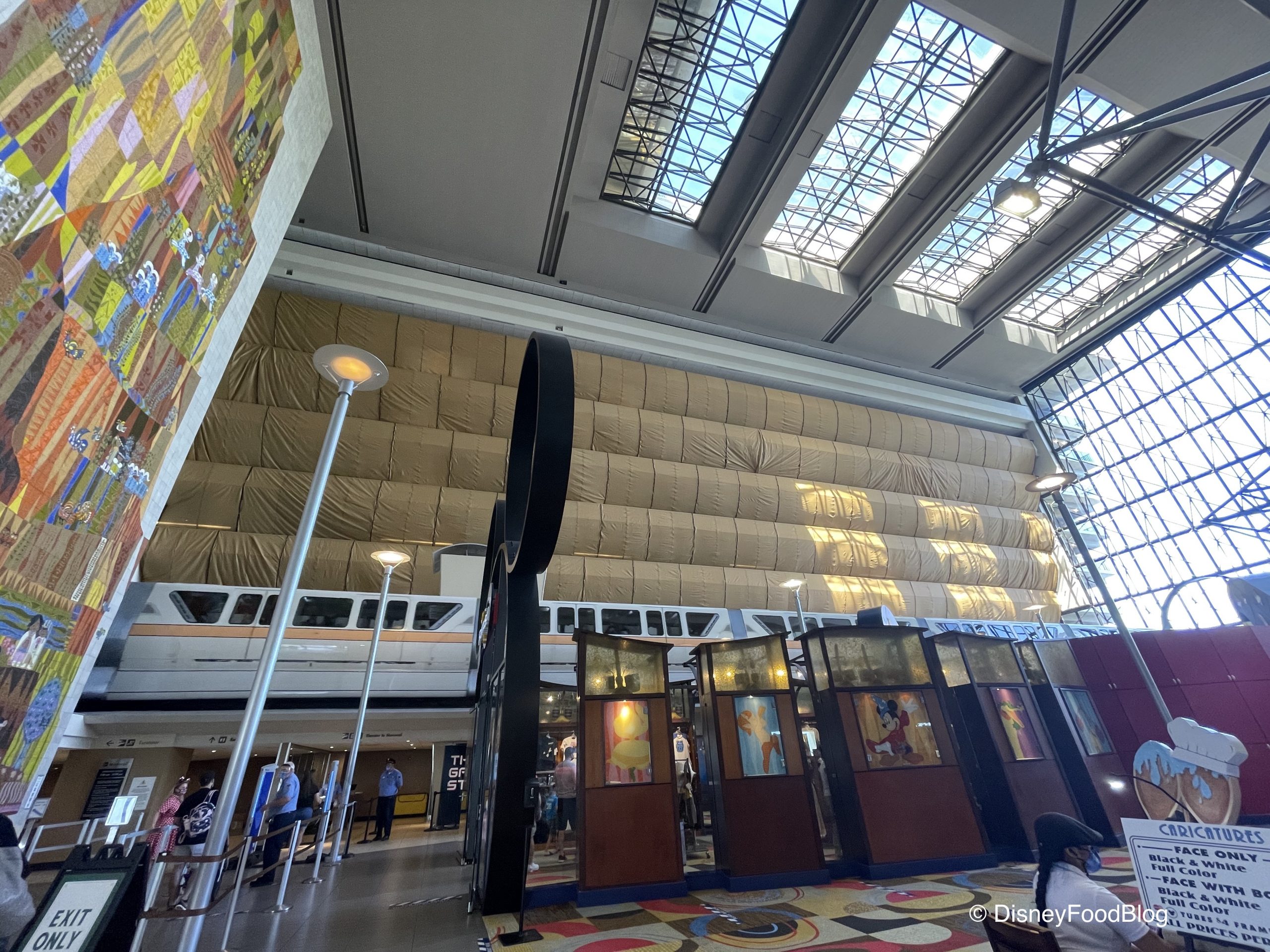 But, now something NEW has arrived at the Contemporary that’s giving Chef Mickey’s a run for its money. Earlier this year, we shared that some of the Contemporary’s Main Guest Rooms would be under refurbishment starting in April. So, today we stopped by the Contemporary to see what was going on. First of all, we were met with QUITE the sight of obvious construction.