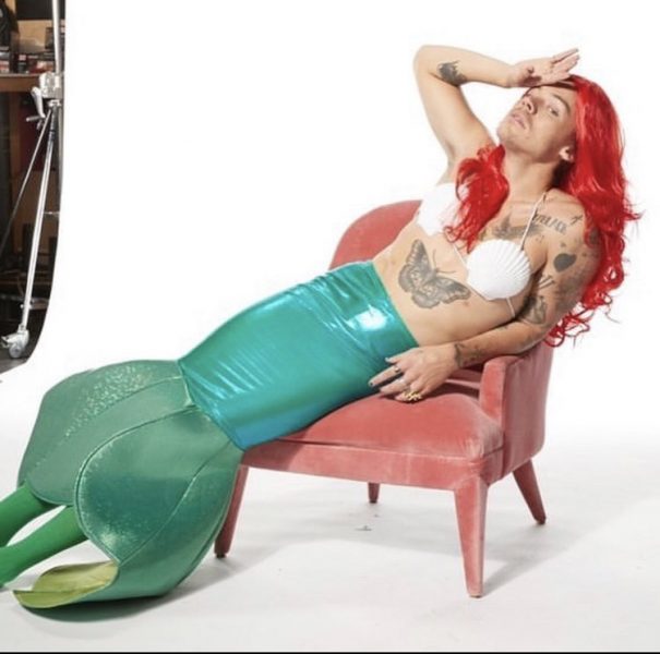 In the photos, Styles is dressed in Ariel’s iconic red wig and green mermaid tail complete with a seashell top. He’s also holding a glass of champagne — life IS the bubbles under the sea!Â