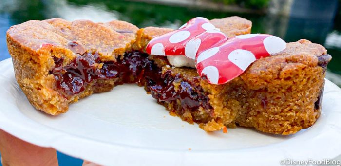 This is a chocolate chip cookie filled with molten chocolate and topped with buttercream and a chocolate Minnie bow! What’s not to love? It’s OOZING with cookie perfection.