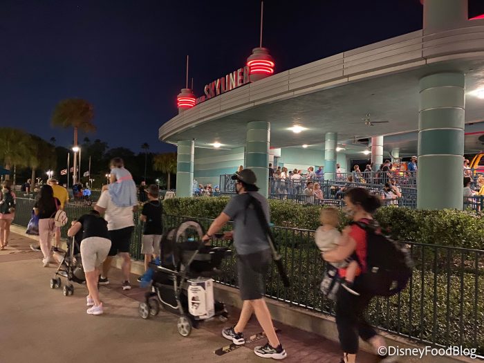 A look at the line for the Skyliner at the Hollywood Studios station. pic.twitter.com/j6M0aefo4m
