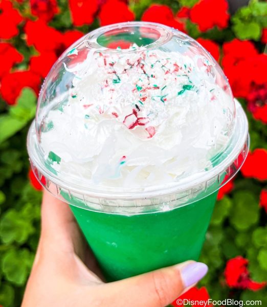 The Peppermint Patti was a Green Lemonade topped with Whipped Cream and pieces of Peppermint Bark. We have so many questions. Why is the lemonade green? Who puts whipped cream on lemonade? And since when do peppermint and lemon flavors go together!?