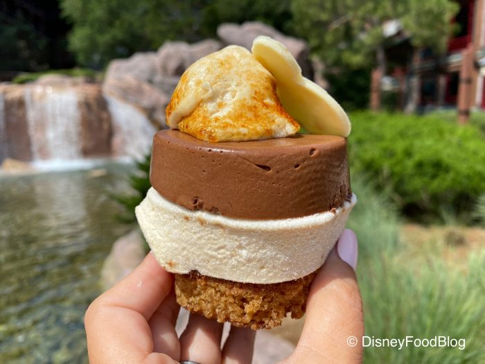 Wilderness Lodge has already given us some unique eats this week like some Mickey scrambled eggs, but today we’re having a new treat that fits right in its outdoorsy wheelhouse — it’s time for some s’mores!