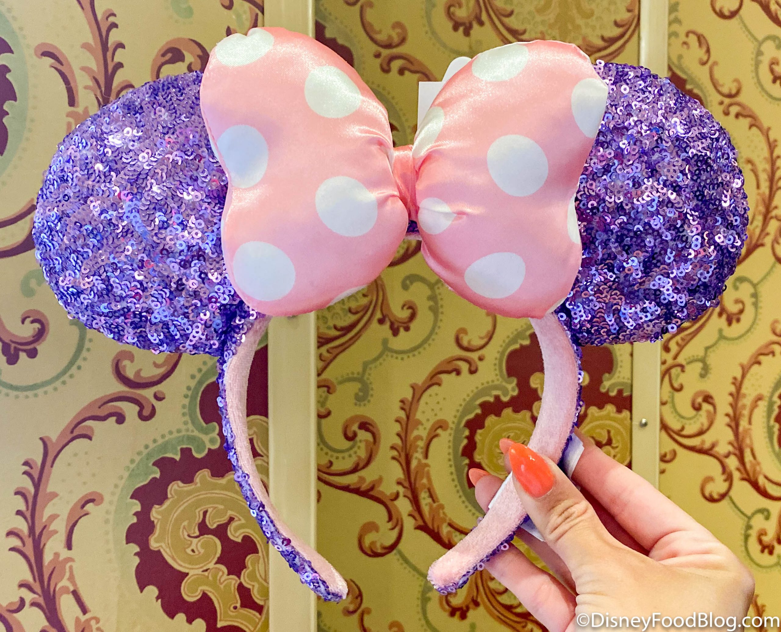 Our next pair of ears is lavender and pink! The puffy pink bow adds a pastel pop to the sequined design.