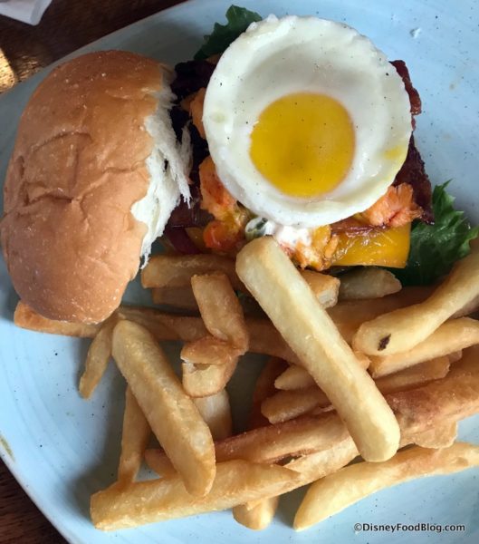 The Monte Cristo is also missing from Bar Riva in Disney’s Riviera Resort at the moment. This dish is made with ham, turkey, gruyere, and strawberry preserves on a brioche roll — that has all been deep-fried (of course)! The Monte Cristo is a cult classic over at Disneyland, so we were thrilled to find a version that was nearly IDENTICAL in Disney World. But, it’s not available at the moment.