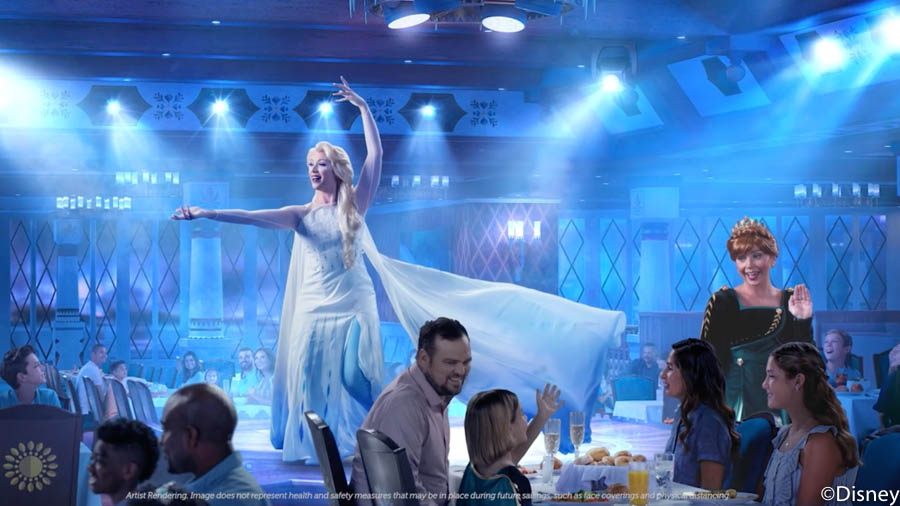 The “theatrical dining experience” lets you interact with Anna, Elsa, Kristoff, and Olaf — and you’ll encounter some pretty cool special effects! As for the food? It’s “world-class cuisine” with Nordic influences. Sounds exciting!
