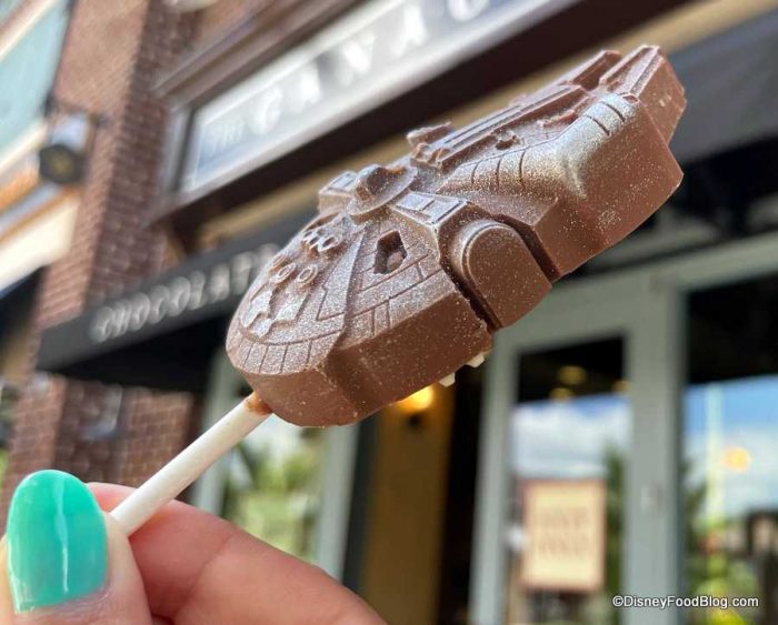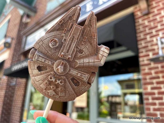 A Millennium Falcon Chocolate Pop will run you 7 Galactic Credits ($7.00), and it’s a super fun treat that we’re so happy has landed once again in Disney World for May the 4th! And… May the FORCE be with you!