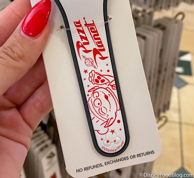 The MagicBand features one of our favorite green alien friends ready to chow down on some delicious pizza. Is it just us, or is anyone starting to crave a slice of pizza right now?