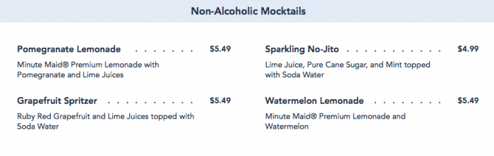 The dinner menu also shows that there will be a number of Non-Alcoholic Mocktails…