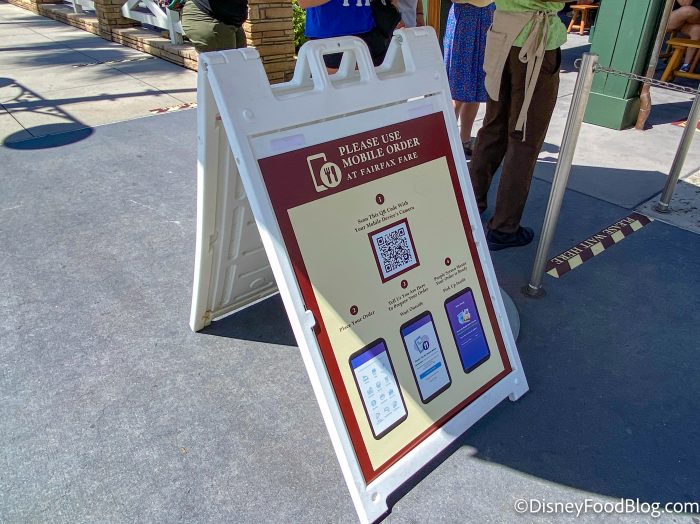 If you plan on dining here, Mobile Order should be your go-to. There’s a sign out in front of the stand with the ordering information, or you can find it listed as one of the choices in the My Disney Experience app.