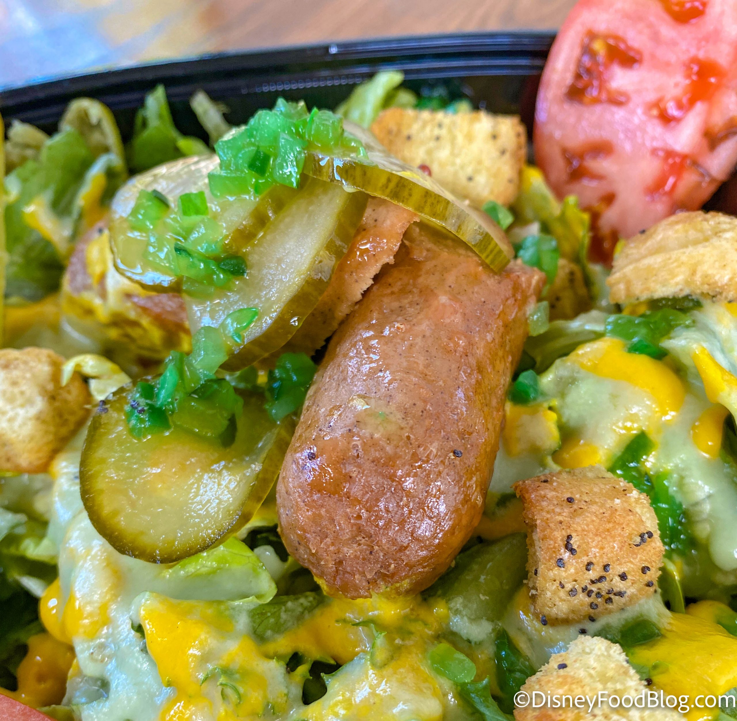 Let’s kick things off with the Chicago-style Hot Dog Plant-based Salad for $11.49!