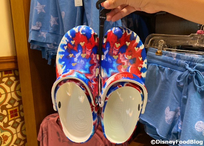 And now we spotted a NEW pair of PATRIOTIC Crocs at Disneyland! Yep, Christmas may feel like it was just yesterday, but we found tie-dye Fourth of July Crocs at Elias & Co. in Disney California Adventure!