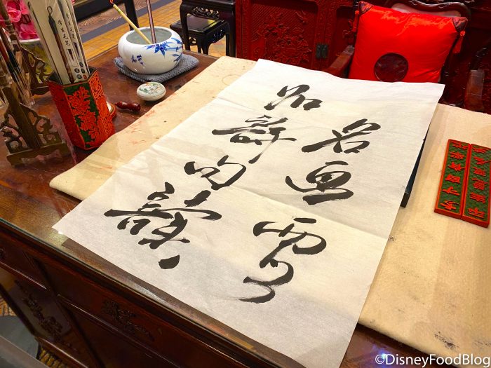 You can find Disney artists and animators making drawings, paintings, and all sorts of other creations around the Disney property. But, the House of Good Fortune is special since guests can watch live calligraphy at the station in the store!