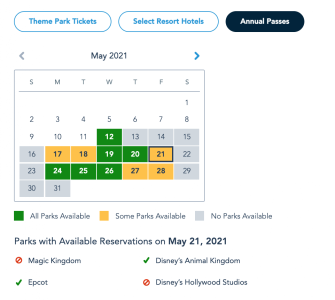 Finally, on Friday, May 21st, Annual Passholders can currently book a Park Pass Reservation at EPCOT and Disney’s Animal Kingdom.
