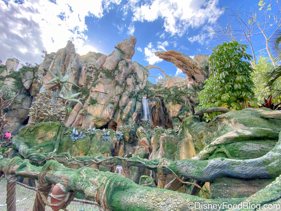 Up near the tippy top of the mountain that makes up the entrance to the Flight of Passage, there are three waterfalls. They APPEAR to be real, but they’re actually an optical illusion! It’s a rotating wheel that looks like white water but “falls” much slower than a real waterfall would, forcing it to appear further from you than it actually is. Disney even added fabric at the bottom to make it look like mist from the water! Tbh, our minds are STILL blown by this one.