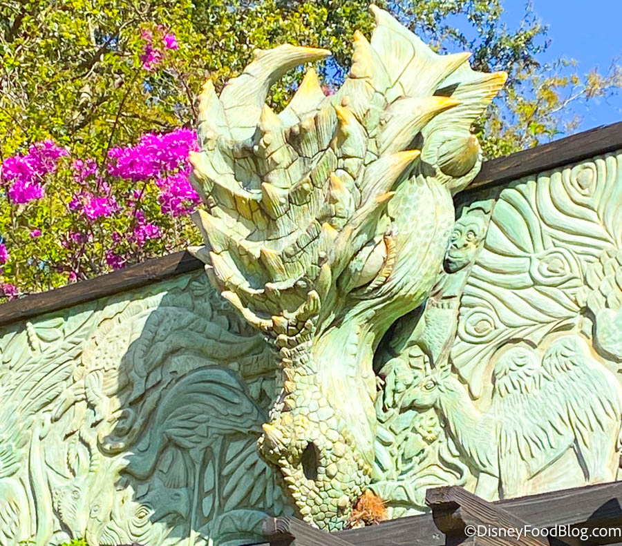 And, if you’ve looked close enough at the lamps around the entrance to Animal Kingdom, you might have noticed that there’s a dragon in the middle of the design. That’s another nod to the forgotten land!