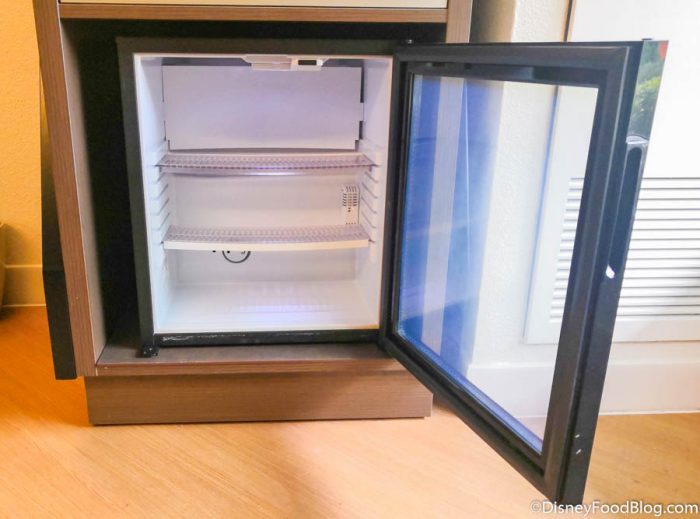 As many of you know, hotel rooms often have some sort of mini bar situation. This offers expensive but quick options when for things like liquor, water, candy bars, etc. But guess what folks, you won’t find them in your Disney resort room. But many rooms do have mini fridges. And if you find that your room doesn’t have a mini fridge, call down and ask if they have one for you. They just might be able to bring one up for ya! Other rooms, like suites, offer larger fridge options.