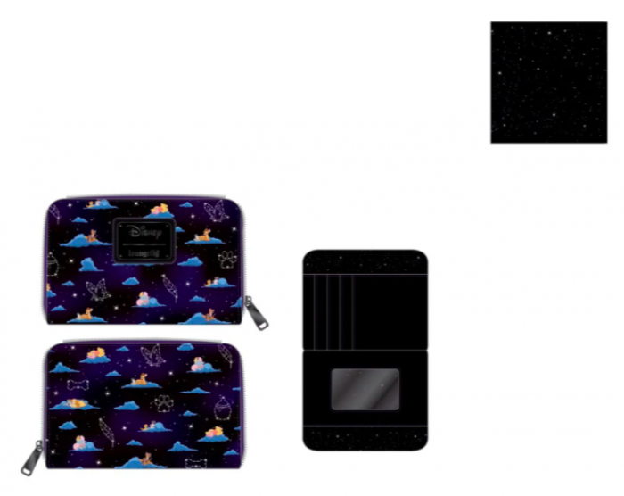 Our next set of accessories features clouds, too, but on a starry night. On the Animal Cloud Dreams Zip-Around Wallet, Dumbo and Bambi make an appearance!