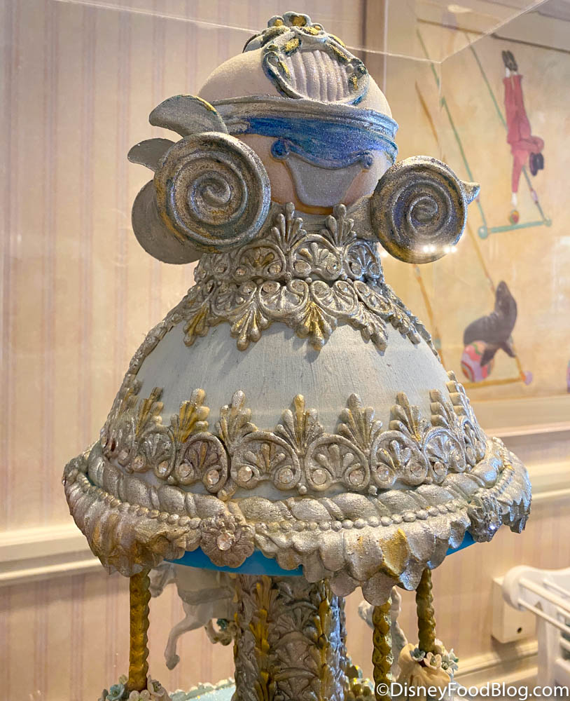 While this sculpture is gorgeous from afar, you’ve really gotta get up close to see all the impressive detail! At the top of the carrousel is a pumpkin carriage…